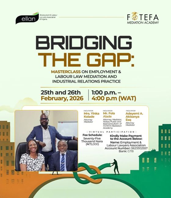 Join the Employment & Labour Lawyers Association of Nigeria (ELLAN) and FOTEFA Mediation Academy for an intensive Masterclass on Employment…